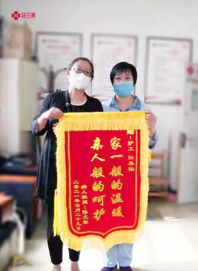 “我就是一個普通的農(nóng)民,沒有什么特殊的經(jīng)歷,但自從做了護工之后對我生活確實有很大的變化——增加了家庭經(jīng)濟收入來源。通過將近一年在醫(yī)院陪護病人的經(jīng)歷,讓我見識到了生命的堅強和脆弱,也讓我認識到生命的珍貴!”獲得錦旗的她略顯激動的說:“感謝烏蘭美健康集團為我們這些沒有一技之長的人提供就業(yè)平臺,也感謝所有在工作中幫助過我的人?,F(xiàn)在,我可以將所學到的知識幫助到更多需要幫助的人。”