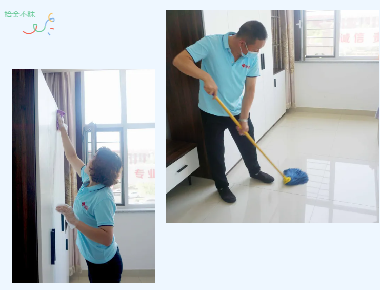 △烏蘭美康養(yǎng)院的生活助理團隊正在為李恩國爺爺打掃房間衛(wèi)生